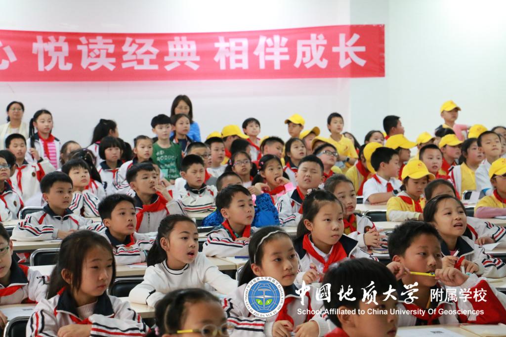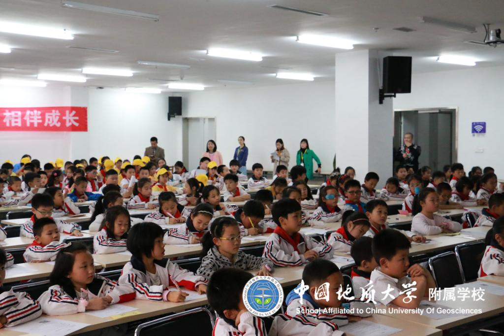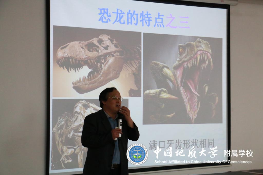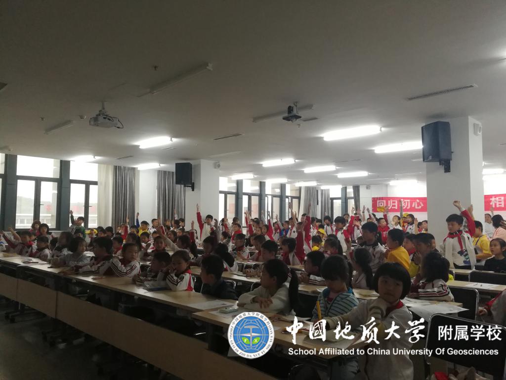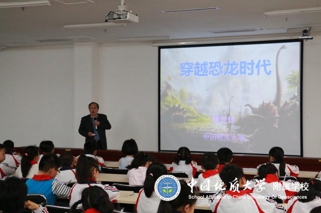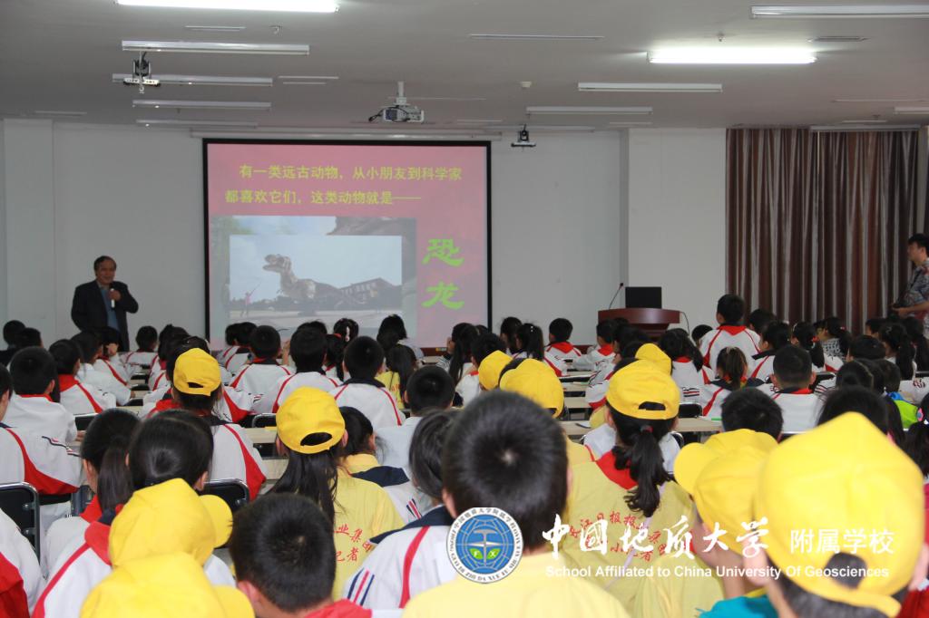 4月23日日下午2点,地大附校三年级四个班172名学生在班主任和配班老师的带领下来到地质大学图书馆10楼会议厅开展了 “阅读伴我成长 让理想展开翅膀”之“穿越恐龙时代”的科普讲座,同学们热情高涨,兴致勃勃,时而思考时而认真做笔记,积极举手回答徐馆长的各种有趣提问,讲座结束后同学们仍意犹未尽。