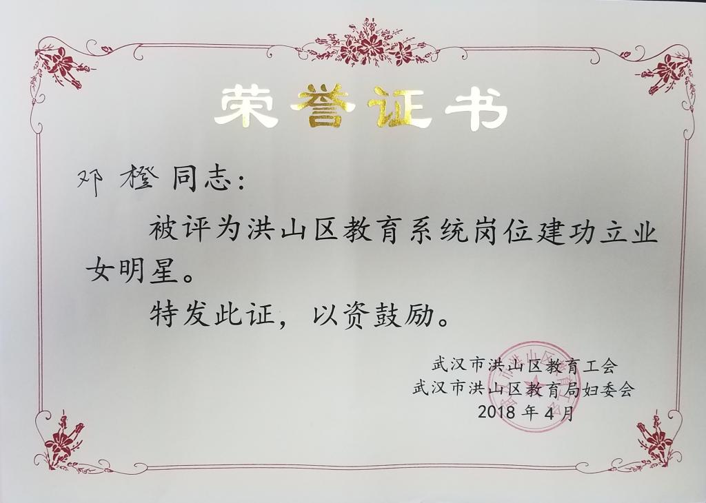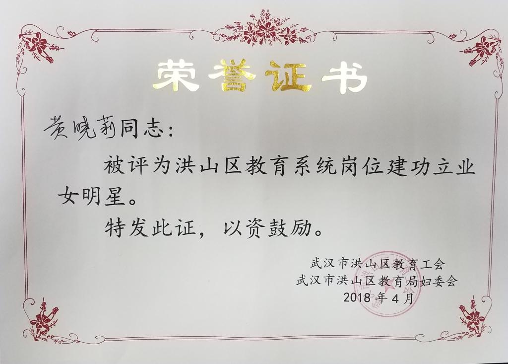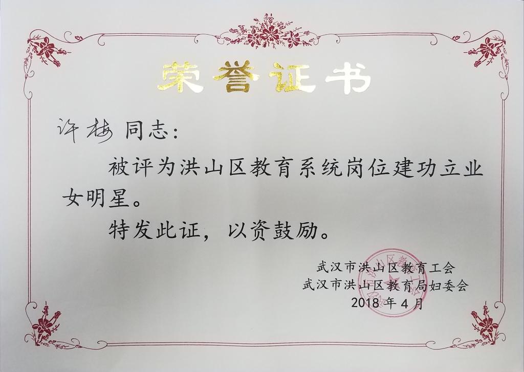 许梅老师、黄晓莉老师、邓橙老师被评为洪山区教育系统岗位建功立业女明星,特发喜报!