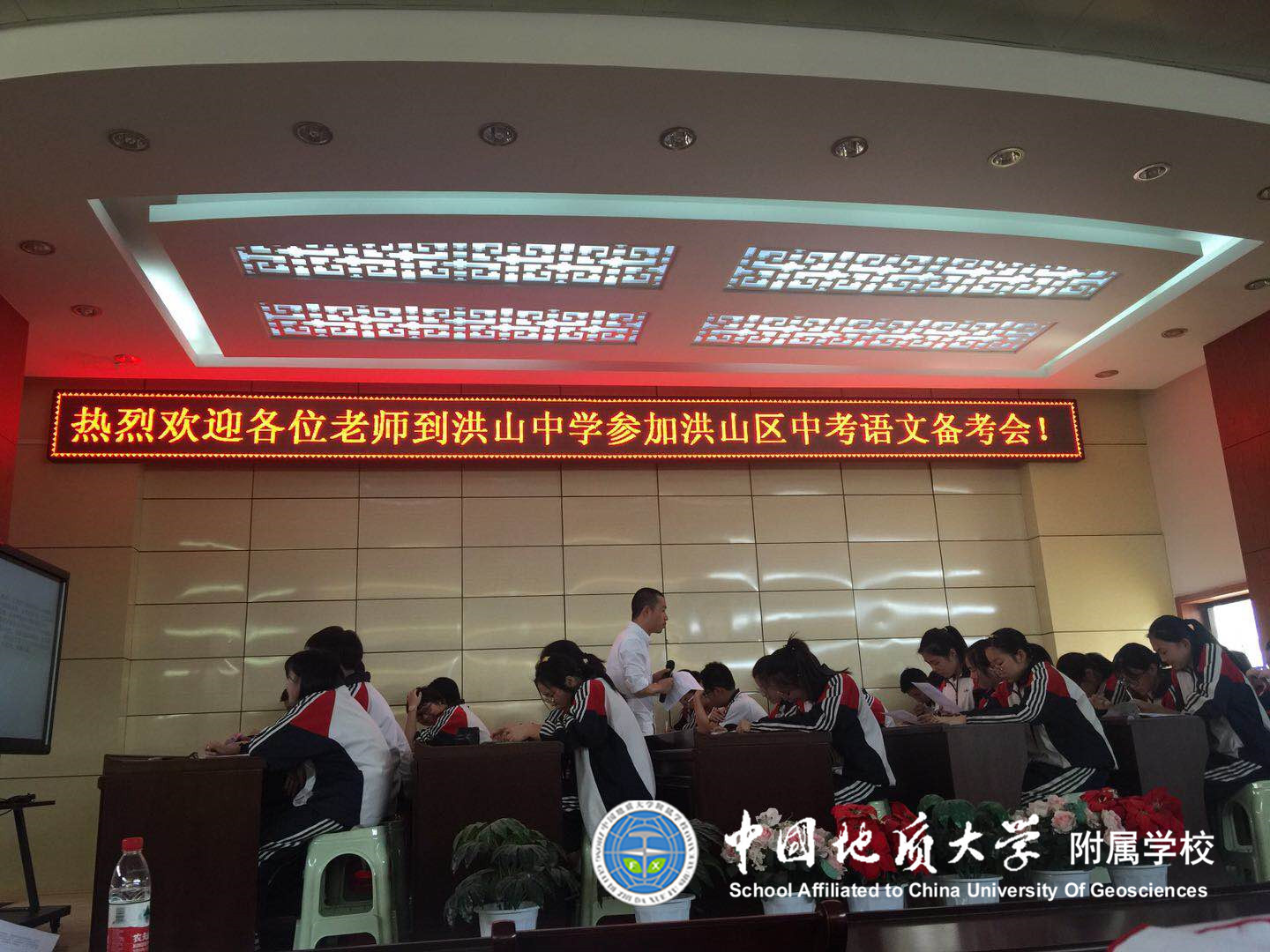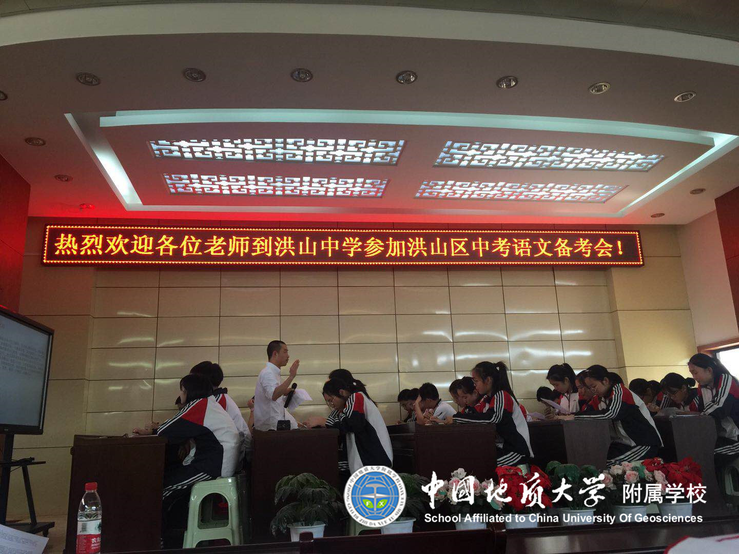 (通讯员:乔皓霖)春风送暖,百花争艳。2018年5月3日,洪山区九年级中考备考会在洪山中学隆重举行。我校九(1)语文教师乔皓霖在活动中展示《2018中考作文材料支撑》的作文示范课。