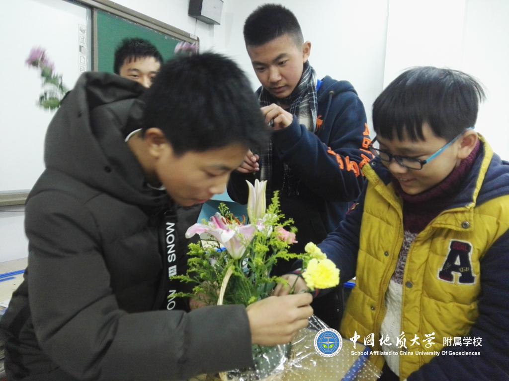 蔡静怡妈妈为我们七(3)班上《插花》这一课。阿姨先讲述了插花的含义,作用。接着告诉我们所需材料,阿姨边说边演示,同学们都认真听着。接着阿姨告诉我们如何插花,我们都全神贯注地看着、学着。最后,阿姨让我们进行比赛,同学们都积极地参加,老师让同学们把我们亲手插的花拿回家送给自己的妈妈。这次活动真有意义!