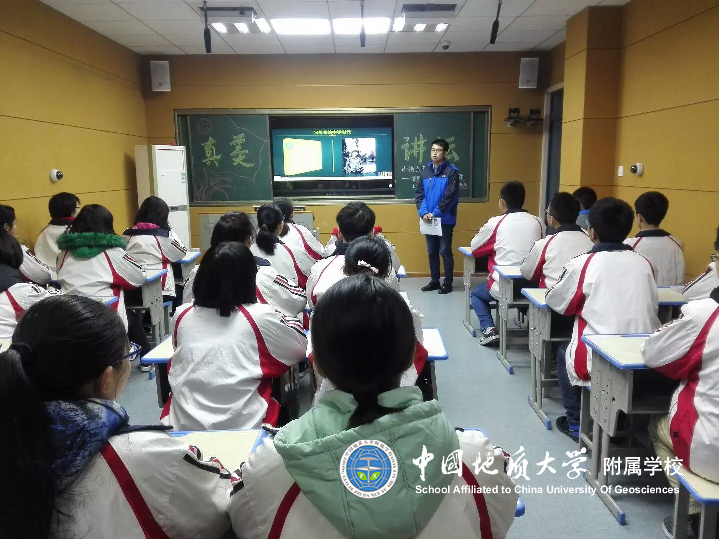 除了有关习爷爷中学时代的内容,霍老师还给同学们讲述了支教地四个孩子的故事,在贫困地区,与他们同龄的孩子们在学习上付出的努力,为了梦想拼搏流下的汗水,引发了同学们的沉思。在最后,霍老师送给同学们一句话:“我们常说幸福是什么?幸福就是你追求梦想的过程,无关成功与失败,无关欢笑与泪水,只关乎走过。”