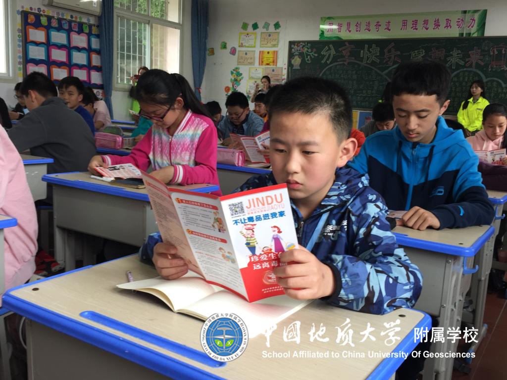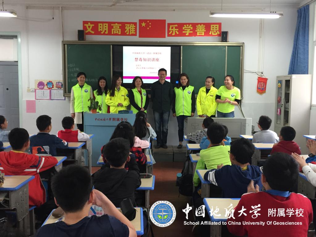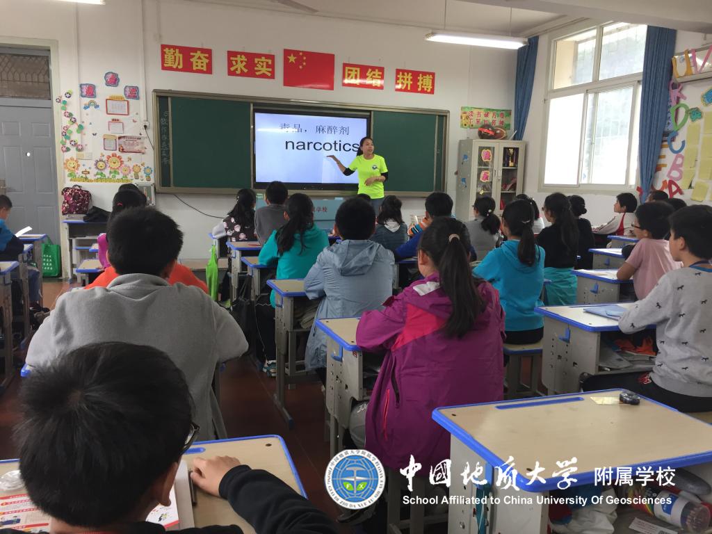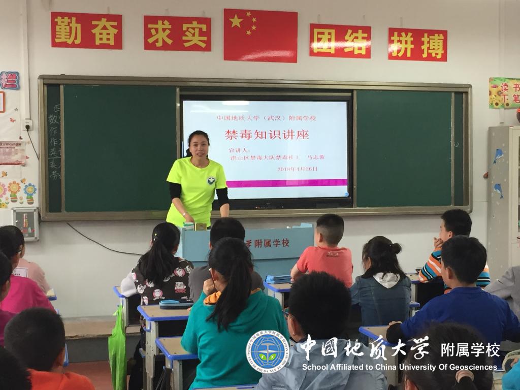 (通讯员:冯涛)2018年4月26日下午,洪山区禁毒大队的警官和社工们来到附属学校,为六年级的同学们上了一堂生动的禁毒教育课。主讲的马警官从毒品种类和吸毒危害方面加强了禁毒知识宣传教育,让大家认识什么是毒品,毒品的分类、吸食毒品会出现什么症状,了解吸食毒品的危害,使同学们从中深深地感受到毒品的可怕。