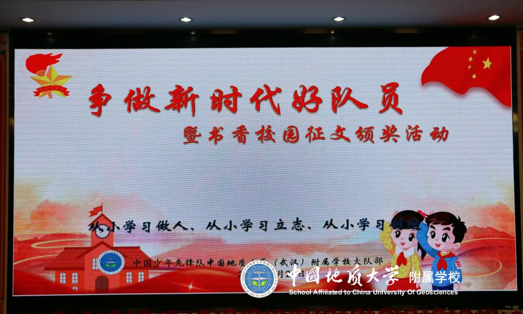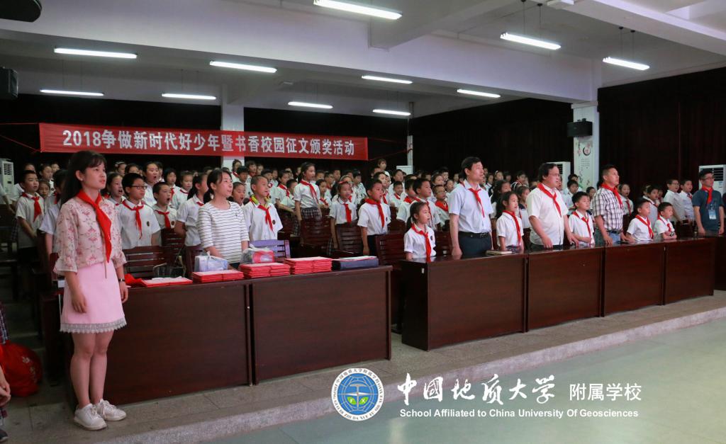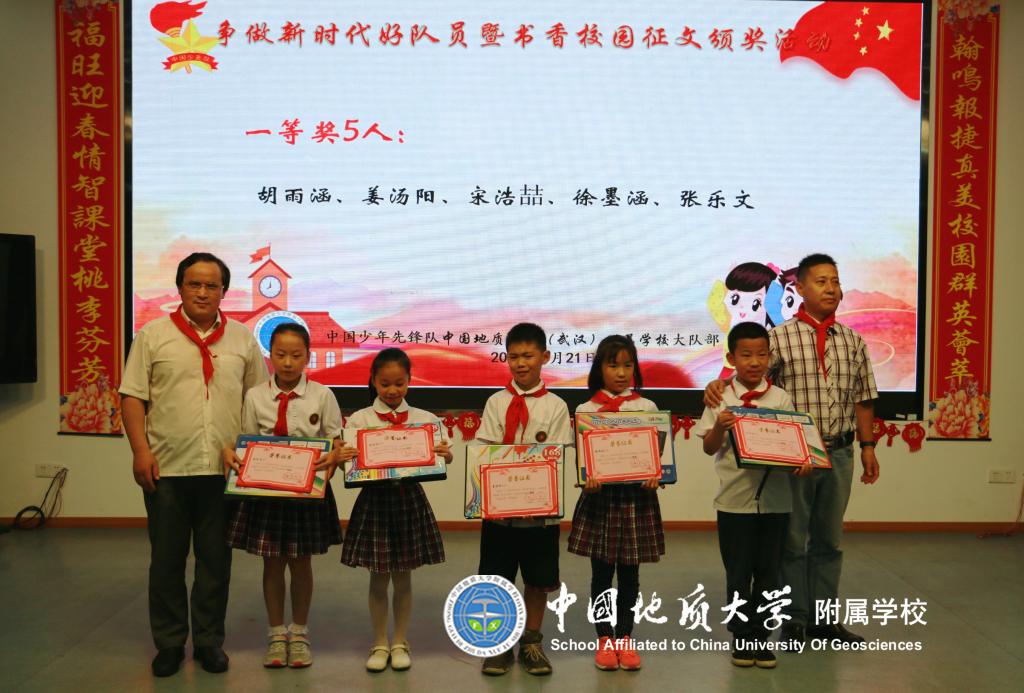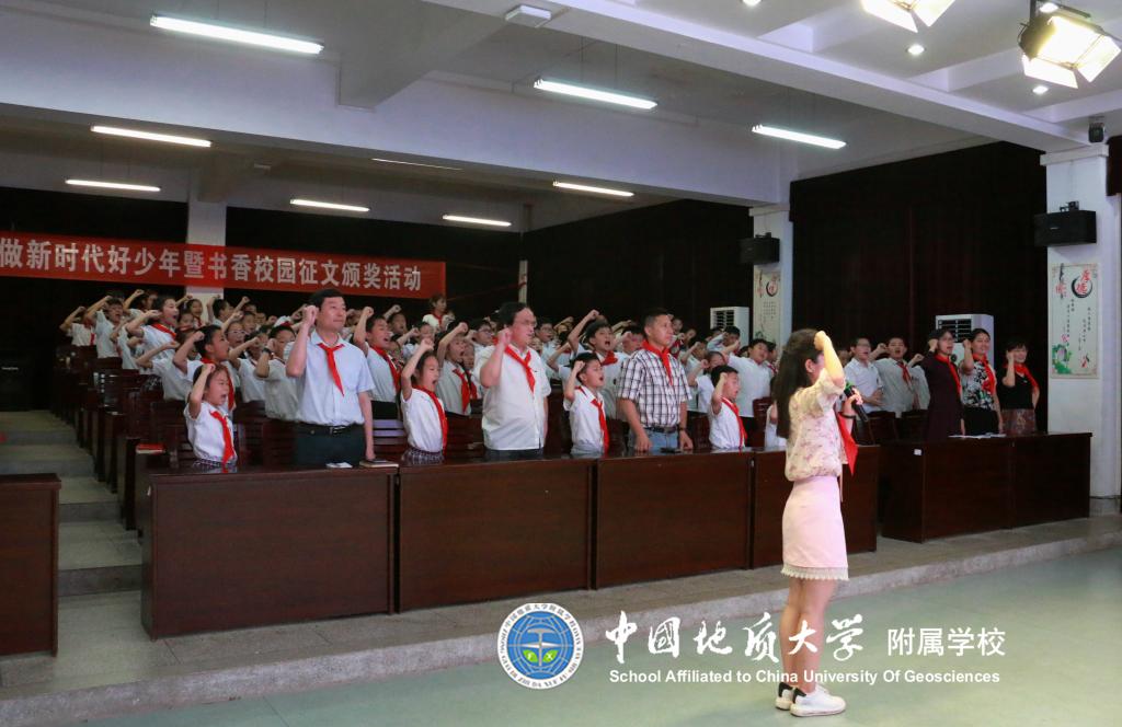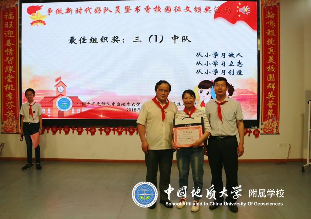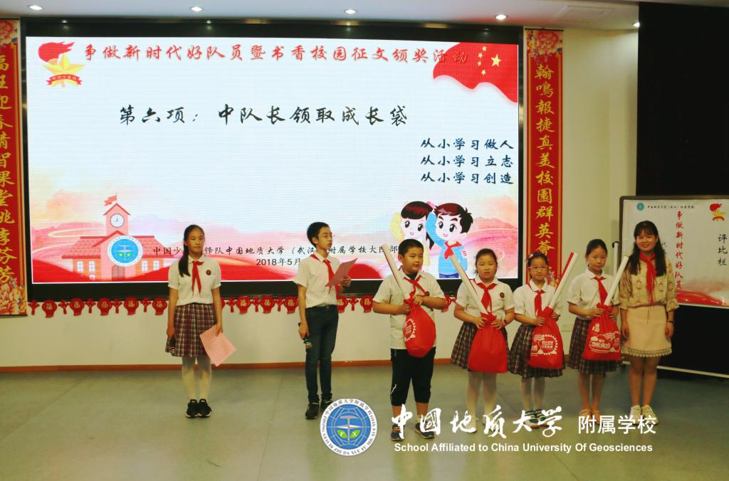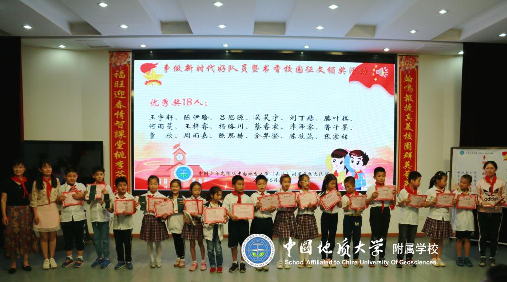 (通讯员:段亚清)为了更好地营造书香校园,倡导多读书、读好书的精神风貌,进一步促进队员们素质的提高。2018年4月23日第23个世界读书日,中国地质大学图书馆携手地大附校三年级172名队员开展了以“读书伴我成长 让理想展开翅膀”为主题的系列活动。参观结束后三年级队员开展了书香校园征文投稿活动,在辅导员及地大图书馆的协力合作下将稿件进行了评比及网上投票,于5月21日下午在地大阶梯教室四楼举行书香校园征文颁奖活动。