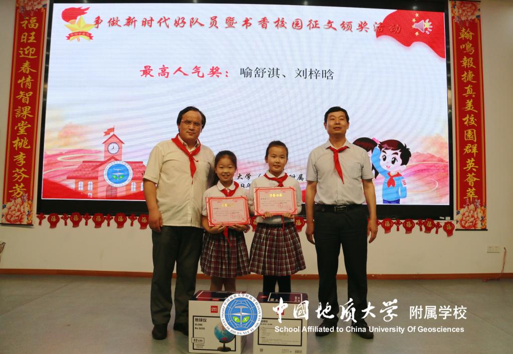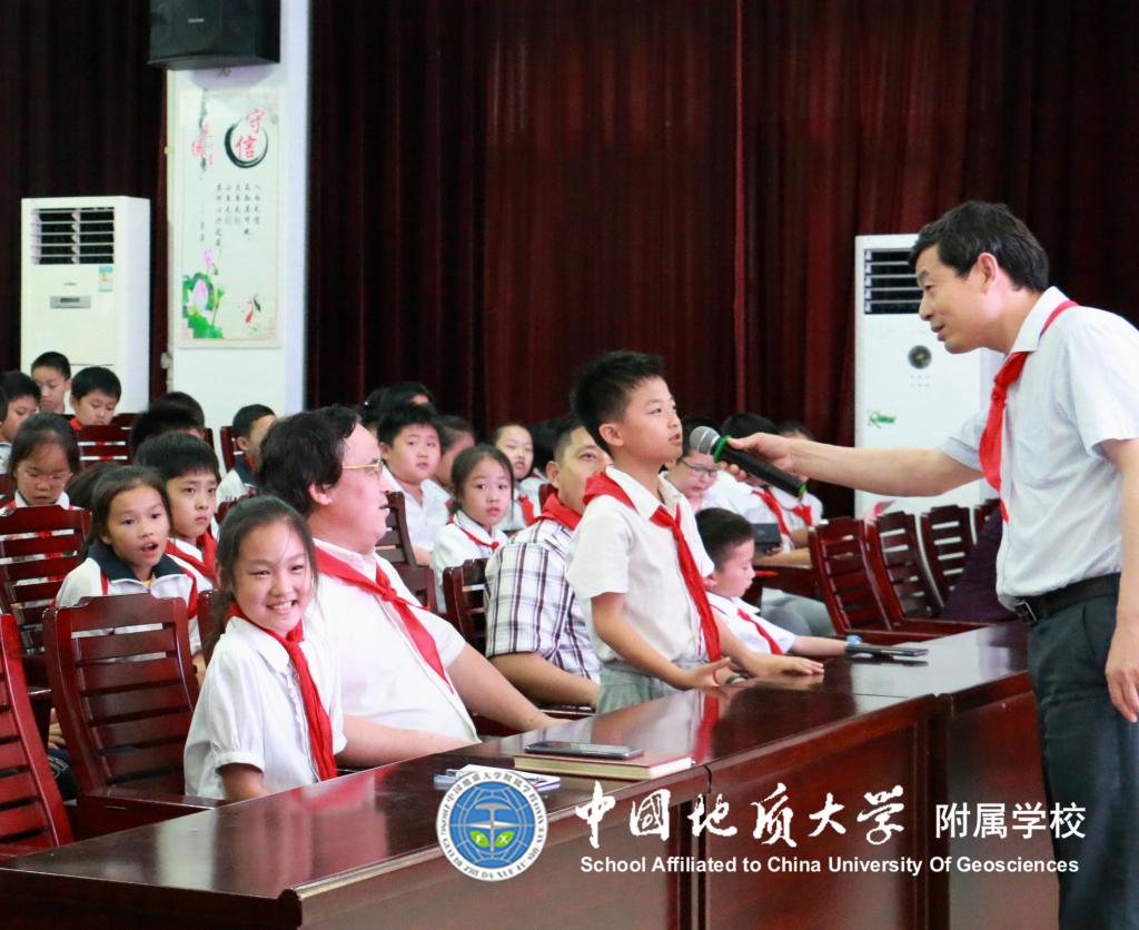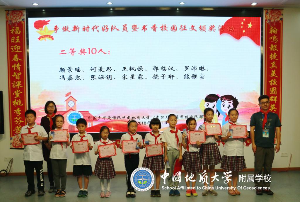 此次颁奖活动出席的领导有地大图书馆的徐世球馆长、朱蕾主任、汤苏林老师、杨美兰老师以及我校的黎义波校长、罗红兵副校长和冯涛主任,活动由我校大队辅导员段亚清老师主持。