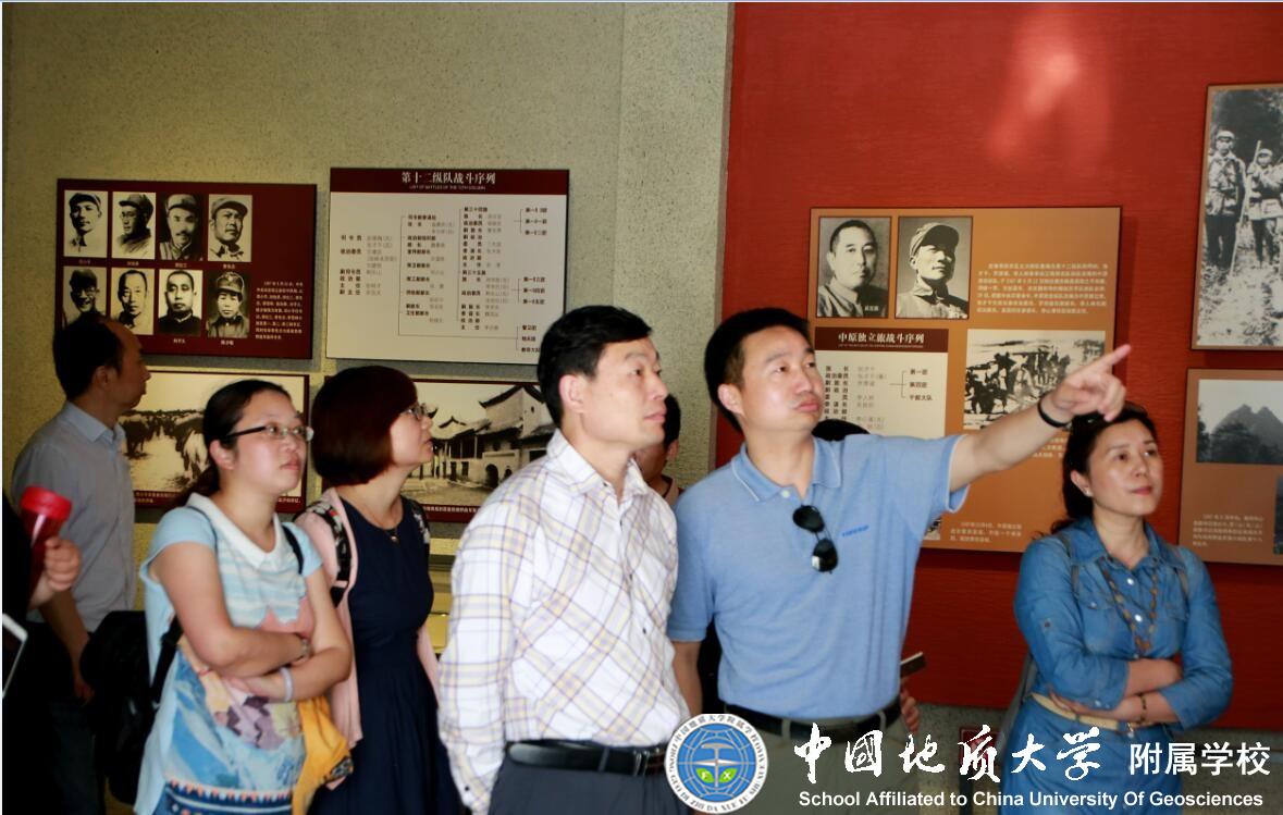 为进一步将“两学一做”专题教育活动引向深入,丰富党员教育学习活动,提高党员思想觉悟,增强党员党性修养,争做“四讲、四有”合格党员。经附属学校党支部书记例会商议、总支委员会研究决定,于2017年5月13日,前往湖北省大悟县宣化店镇“周恩来同志1946年与美蒋代表谈判旧址”及“中原突围纪念馆”,开展党员“勿忘初心、砥砺前行”专题实践教育活动。附属学校34名党员和2名培养对象参加了此次教育实践活动。