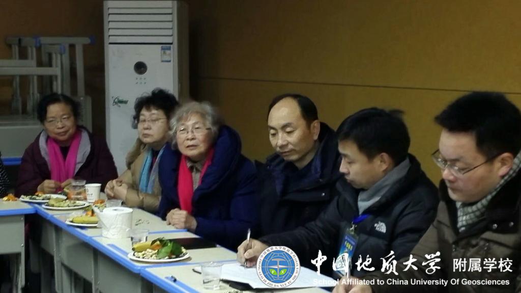 首先陈主席代表附属学校全体教职员工致欢迎词:热烈欢迎到场的退休教师,并送上美好的祝福。彭冠军书记代表附校领导汇报了2017年附属学校的工作情况以及取得的成绩。紧接着播放特色课堂视频资料,让到会的老师全方位立体了解、并感受第二课堂。随后退休教师积极发言,充分肯定了附属学校前期工作以及取得的成绩。78岁的孙慧嫣老师有感而发:附校办得好,也是退休教师的荣耀,身为附校人出门在外腰板都挺直了,说话也更硬气了……胡珊老师说:感谢附属学校每年都想着退休的老同志,让退休老师倍感温暖,学校没有忘记大家……孙菊花老师说:2018年9月外孙就要读一年级了,很高兴外孙到时能就读这么优秀的学校……附校老校长曹清姝的孙女黄灿就读附属学校九年级,成绩一直保持在区排名20以内,她说通过对孩子学习跟进了解到,学校严格管理,严抓教学……对孩子们一刻也没有放松,附属学校之所以能在洪山区取得好的排名,与“严”字分不开,不过也中肯地提出了一些建议……老师们的真情发言感动了在座的每一位到会人员。