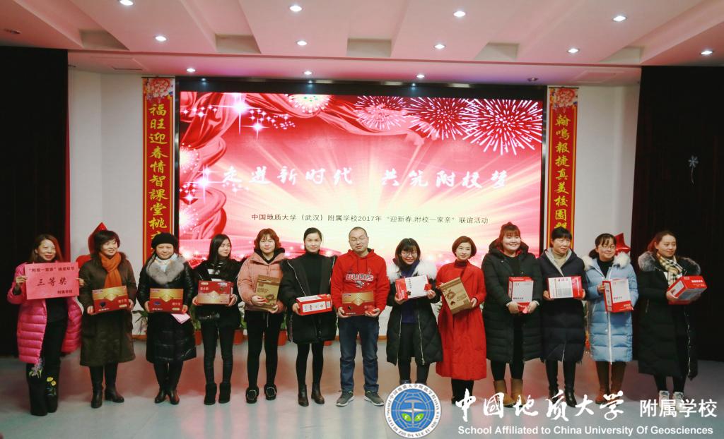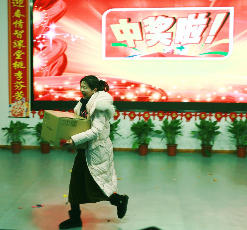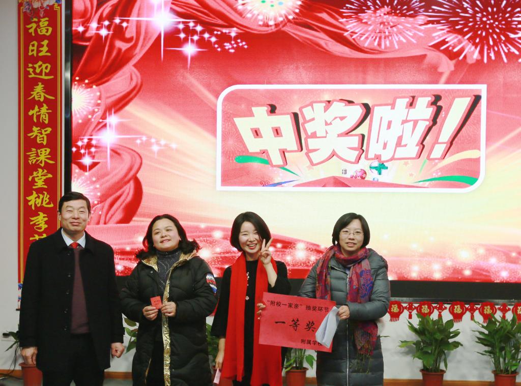 联欢活动开始前,附属学校彭冠军书记代表校领导讲话,为参加活动的教职员工送上温暖的新年祝福,用热情洋溢的话语首先点燃了联欢活动的激情。分工会主席陈红兰开场前暖场活动——抽取三等奖,让砰砰的心跳和惊喜喊叫不断跌宕起伏。