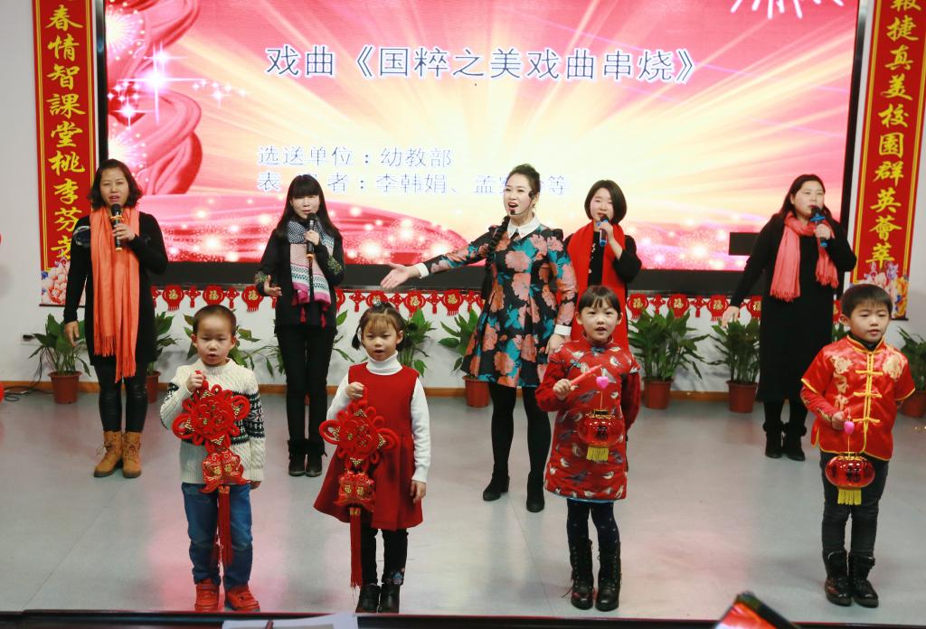 本次联欢活动附属学校共选送了8个精彩的节目:幼儿园李韩娟老师带来的《国粹之美戏曲串烧》,以扎实的表演,传神的动作深深吸引着每一位观众。